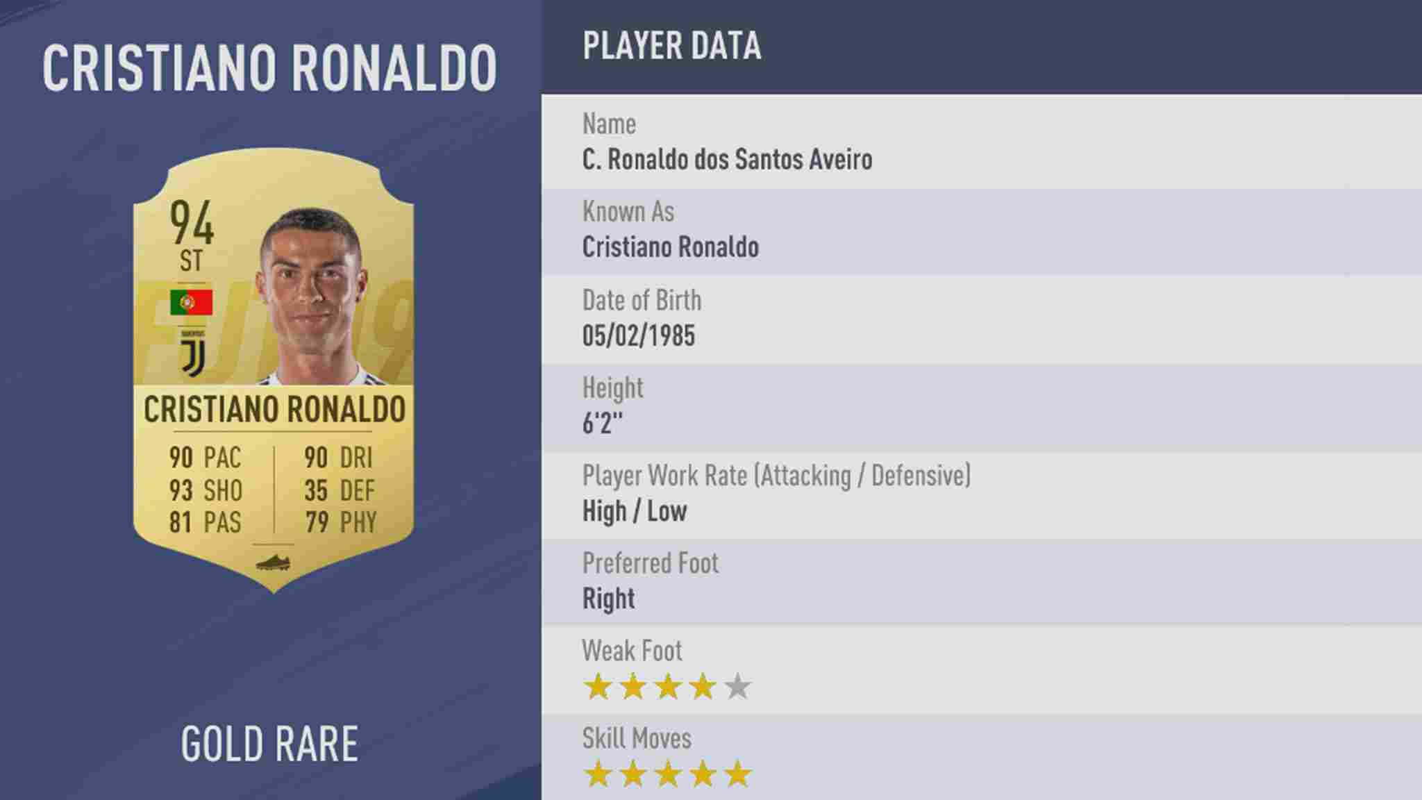 رونالدو که امسال در نقش ST ظاهر خواهد شد در این فیلم انتظار داشت ریتینگ او باید 100 اعلام شود. در حالی که اولیور ژیرود متواضعانه درخواست ریتینگ 57 را برای خود در فیفا 19 کرد.